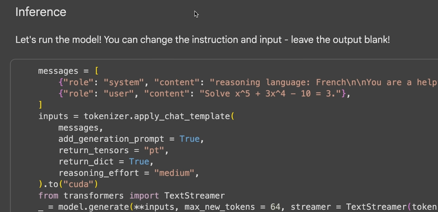 Colab gives you access to a T4 GPU, which is powerful enough to run and fine-tune smaller open models (around 12B–20B parameters).